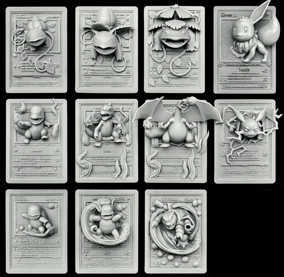 Bring your favorite Pokémon to life with this exclusive set of 11 high-detail 3D card STL files, designed specifically for 3D printing. Each card features a raised, sculpted character for a premium collectible look that stands out once printed.